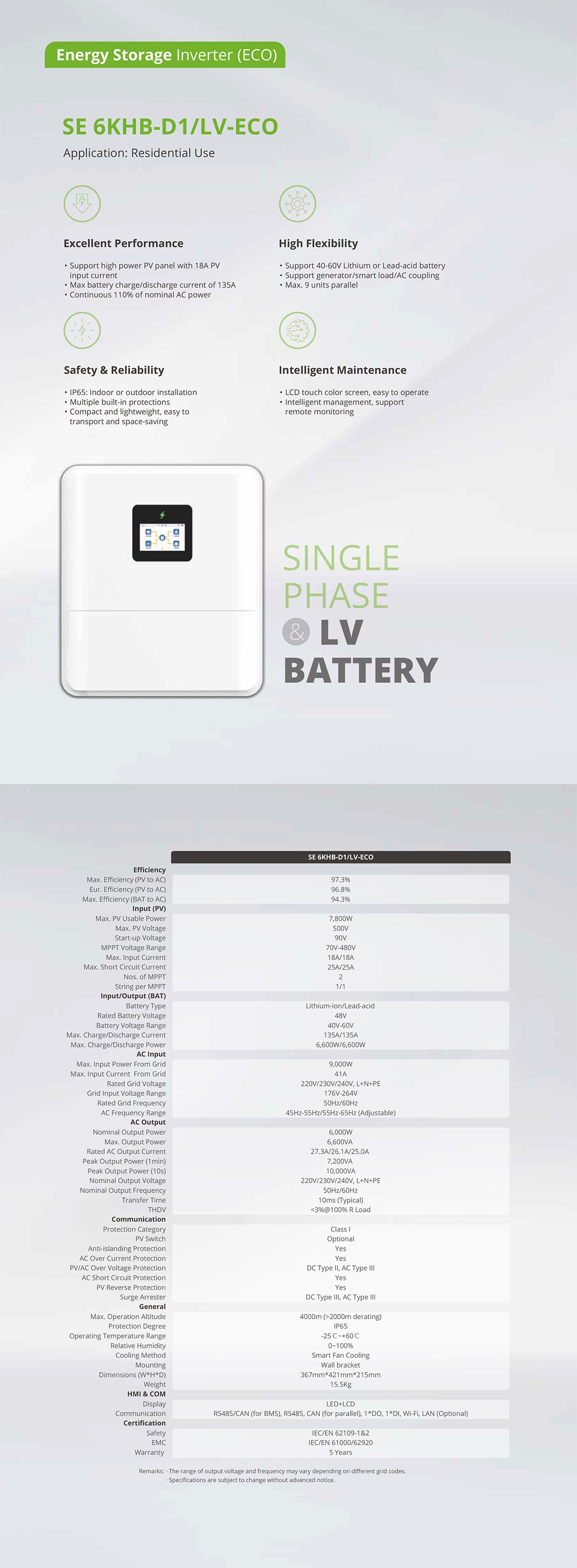 6kW LV Single Phase ECO Inverter