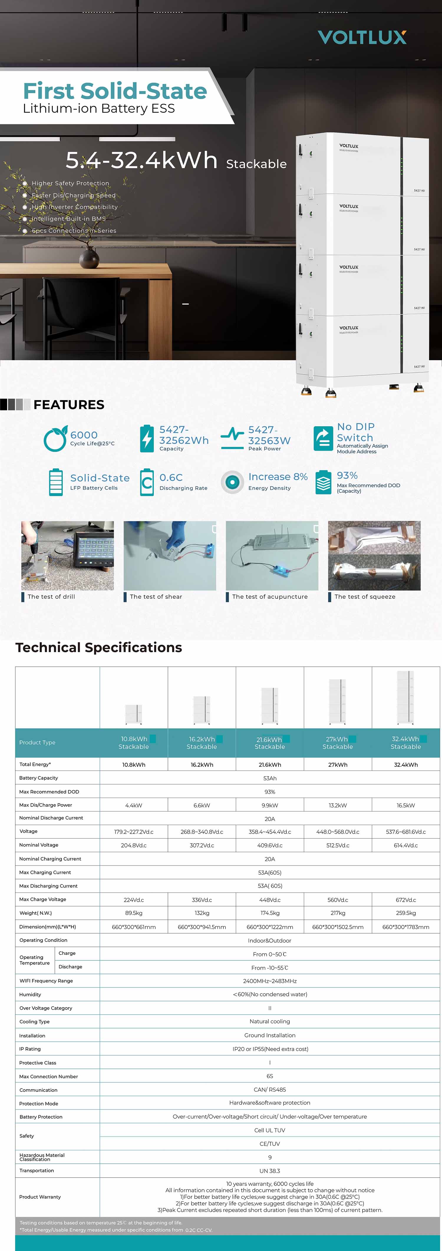 ⚫ The anode material is Solid State Cells, which has good safety performance and long cycle life